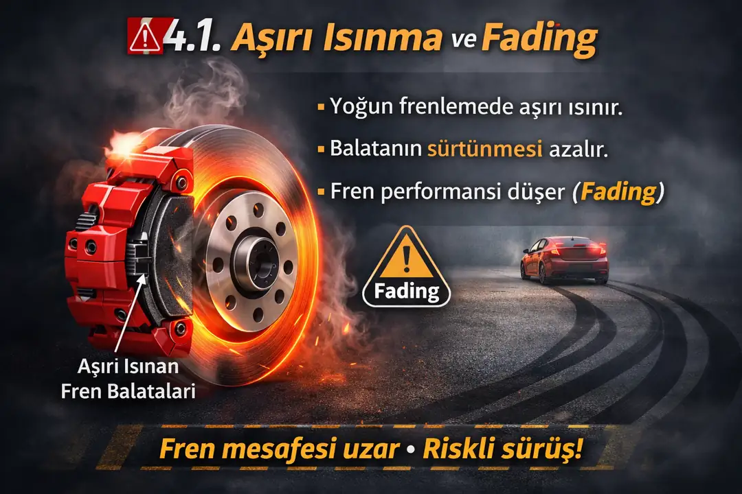 Sürekli sert fren kullanımında balata çok ısınır. Bu, sürtünme katsayısının düşmesine ve fren performansının azalmasına yol açar (fading).